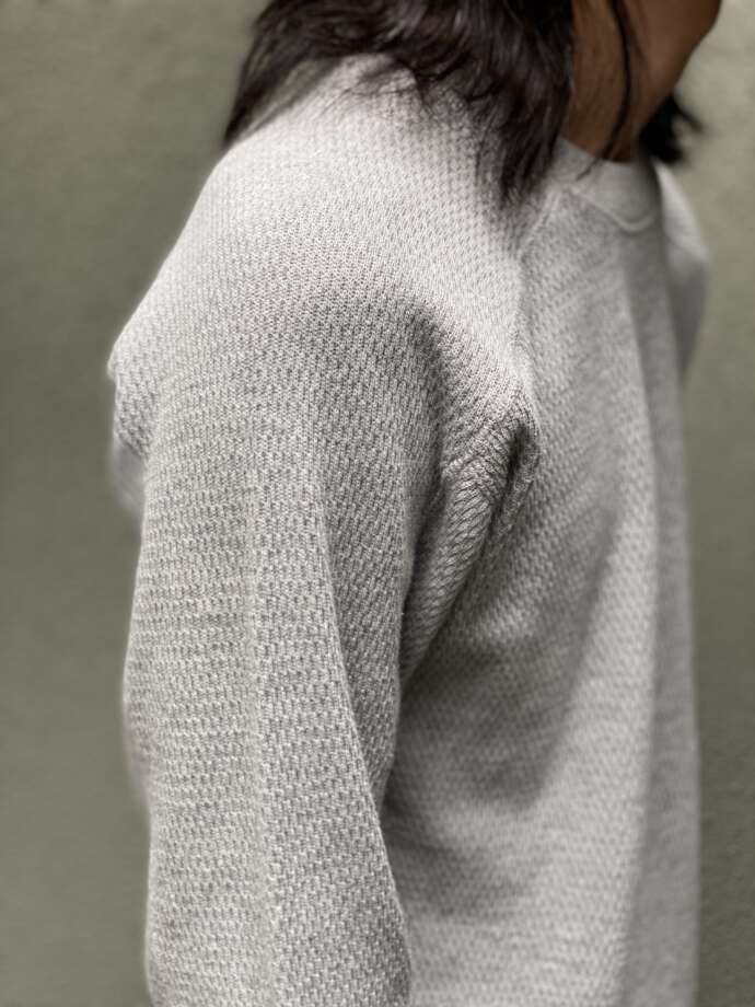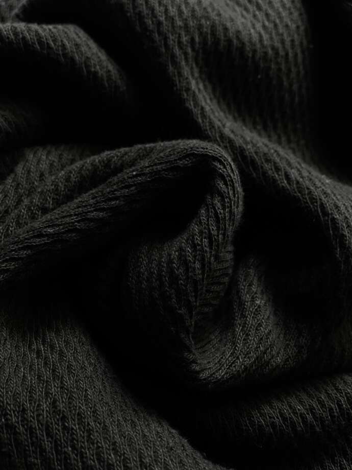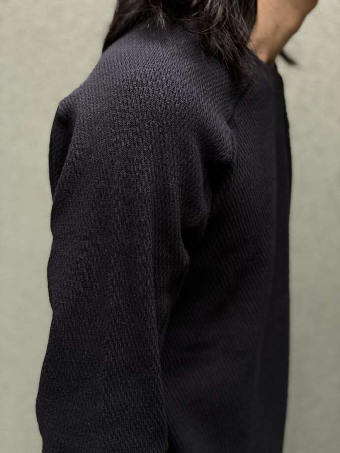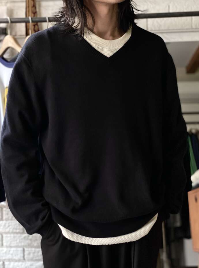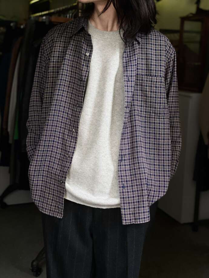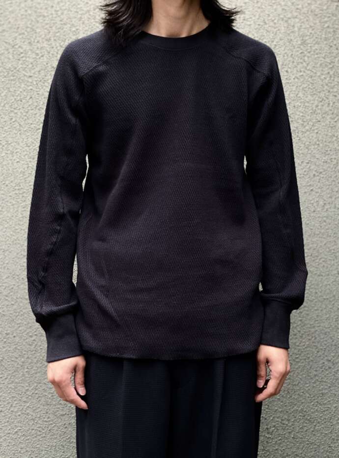しっかりと肉厚でタフな質感ながら、着心地は驚くほどストレスフリー。古着のサーマルにありがちなピタッとした窮屈さもなく、インナーとしても1枚で着てもサマになります。いわゆる“肌着感”がなく、ロンTのような感覚で着られる万能な一枚です。