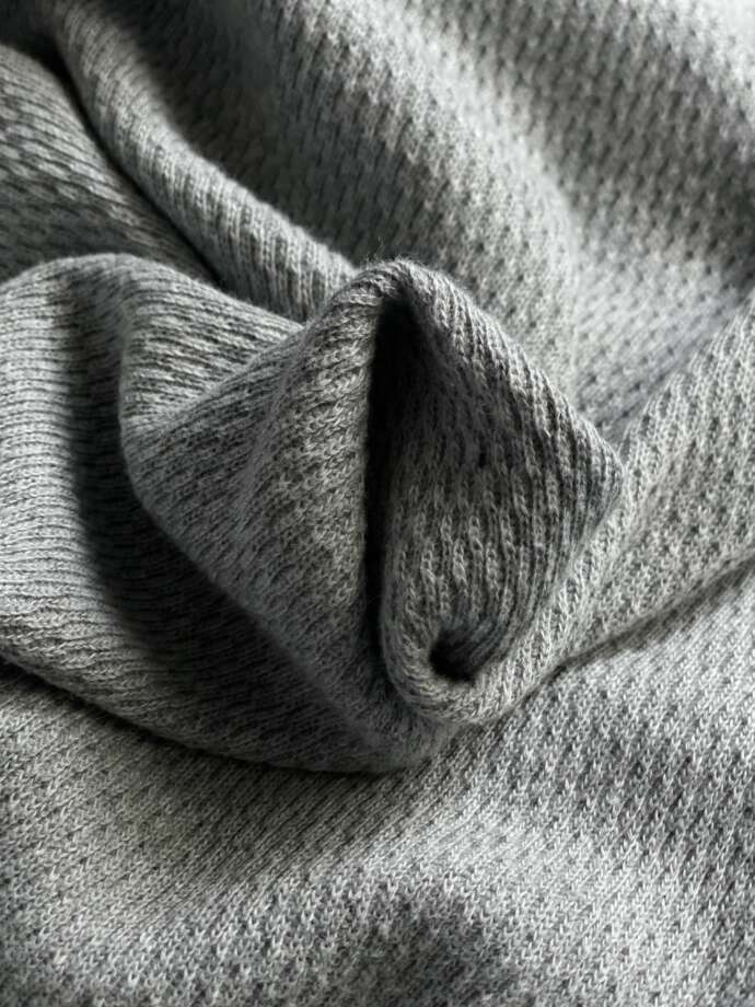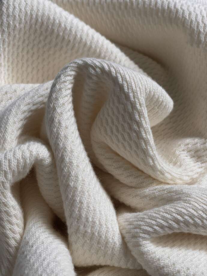 凹凸のあるハニカム生地が、肌との間に空気の層をつくって熱を逃しにくくしてくれる理にかなった構造。