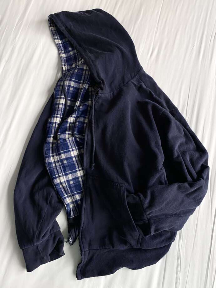 ブランクネイビー面とチェック柄の両A面リバーシブル。コレぞ、グッドレギュラーな古着です。