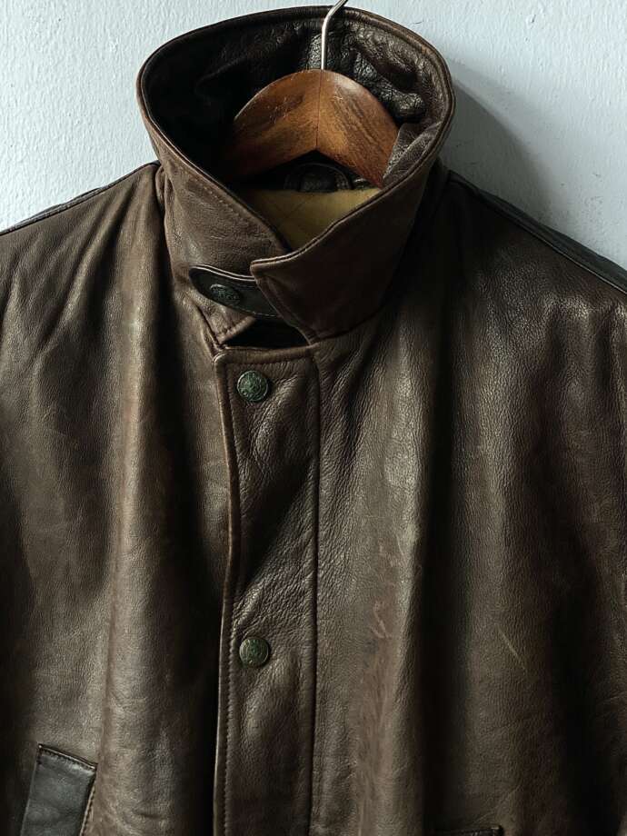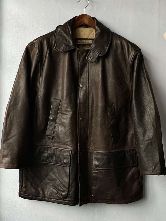 90s ARMANI JEANS Leather Car Coat DARK BROWN