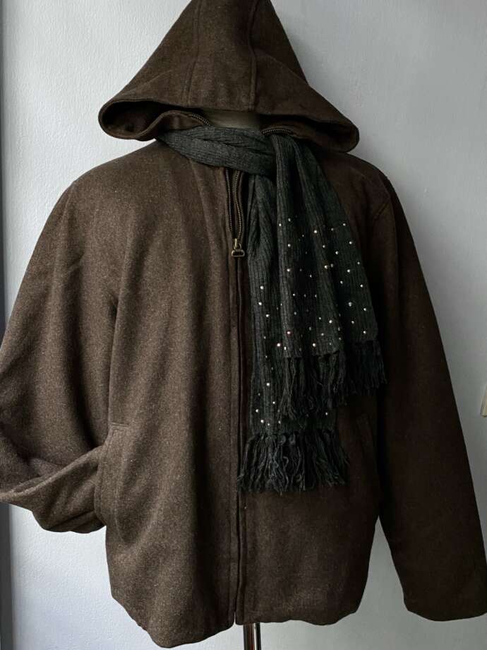 肉厚なメルトンウールフーデッドジャケット。シンプルで、良い服。これと同じモノを探そうと思うと中々見つからない、そんな古着だと思います。