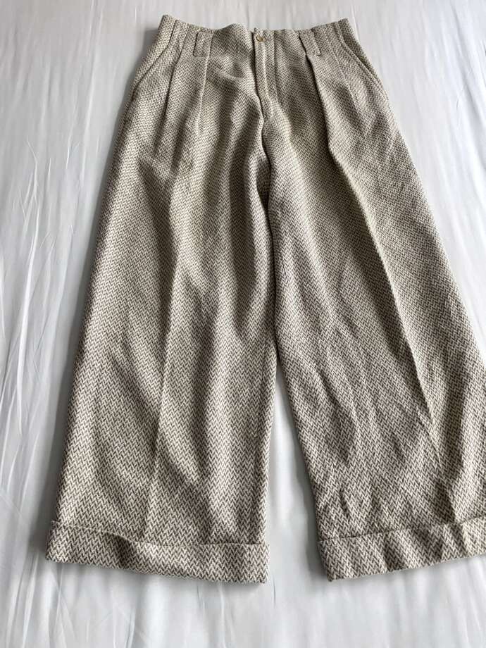 アイボリーベースに変わった織り柄。ワイドシルエットでクロップド丈。スタイリングのマンネリ解消になると思います。