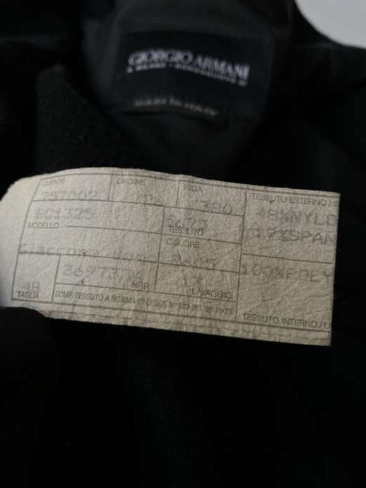 ナイロンと弾性繊維の生地ですが、同一素材をわざわざ二重記載にしてます。ここがアルマーニらしくニヤけてしまいますが、素材工程を質として分業させているのではないかと思います。