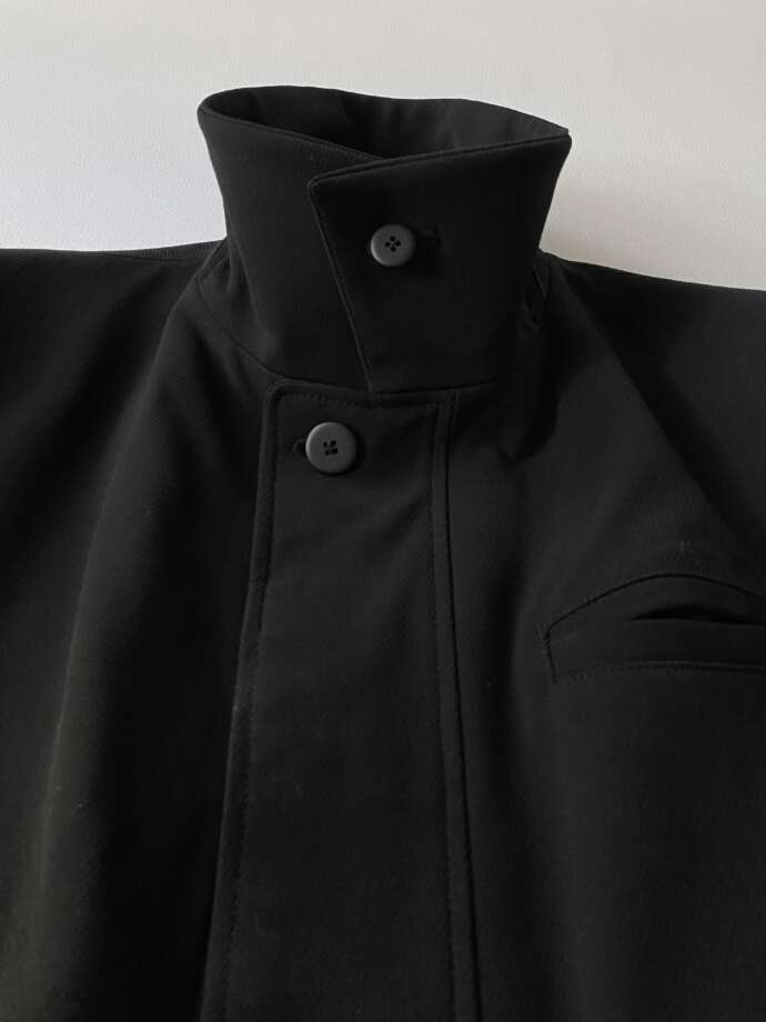 比翼のフルボタンでその振る舞いはワークウェアっぽさという矛盾。