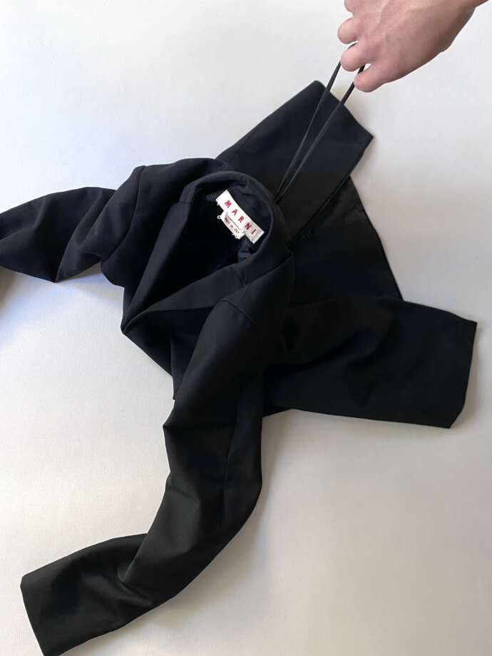 絶妙な2つのカテゴリーの境界線を壊した実験性をもった1着です。