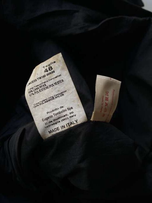 ナイロンと弾性繊維の生地ですが、同一素材をわざわざ二重記載にしてます。ここがアルマーニらしくニヤけてしまいますが、素材工程を質として分業させているのではないかと思います。