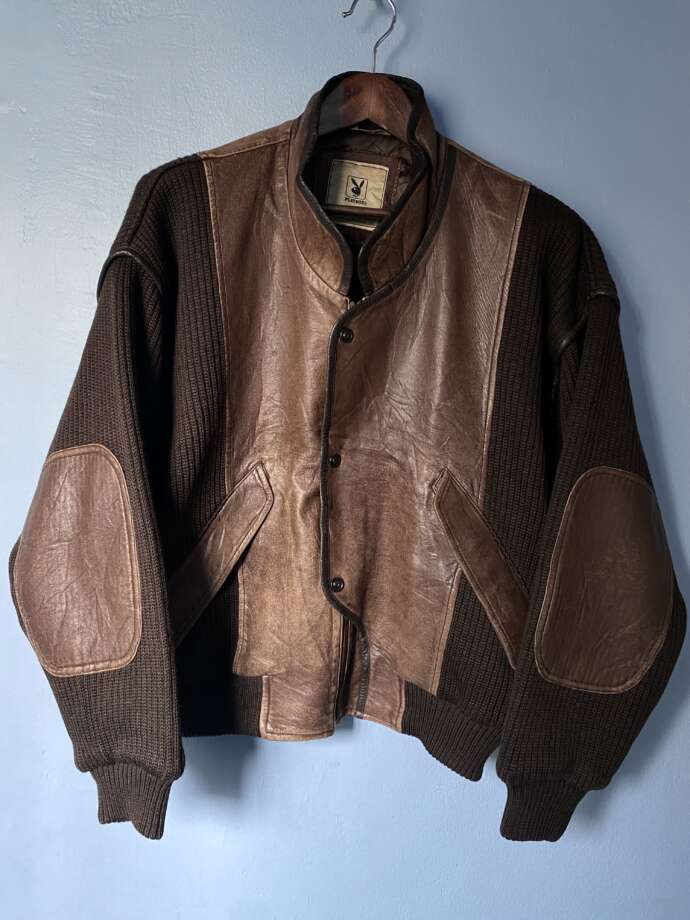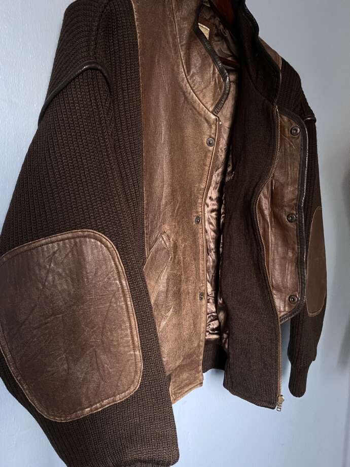 Wool Knitting/Leather Switch Design Blouson