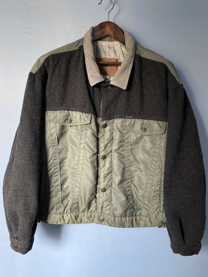 色んな素材や配色で展開されている、トラッカージャケットですが、このパターンは初見です。こんなのもあるんですね… ウール地とナイロンの切り替え。珍しいと思います。