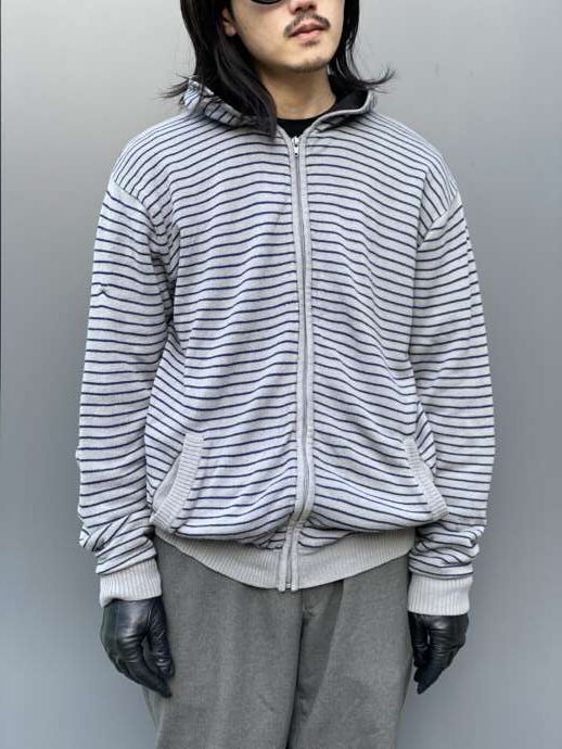 ボーダー柄のニットジップパーカー