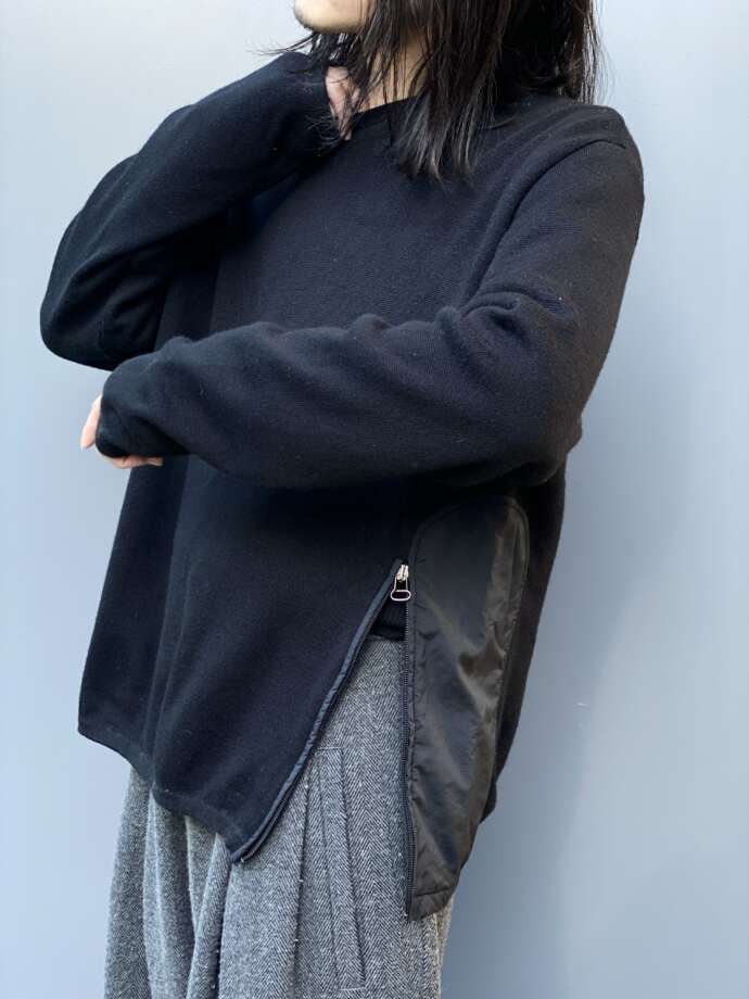 両サイドにはナイロン生地×ジッパーデザインの切り替え