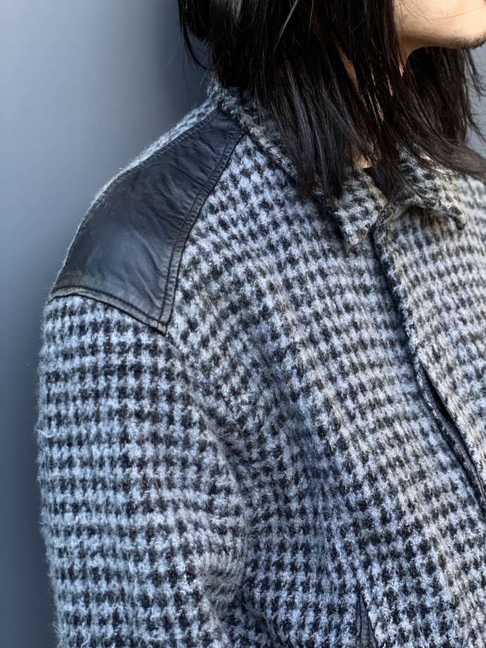 シャギー感のあるウール生地にレザーの切り替えデザイン。